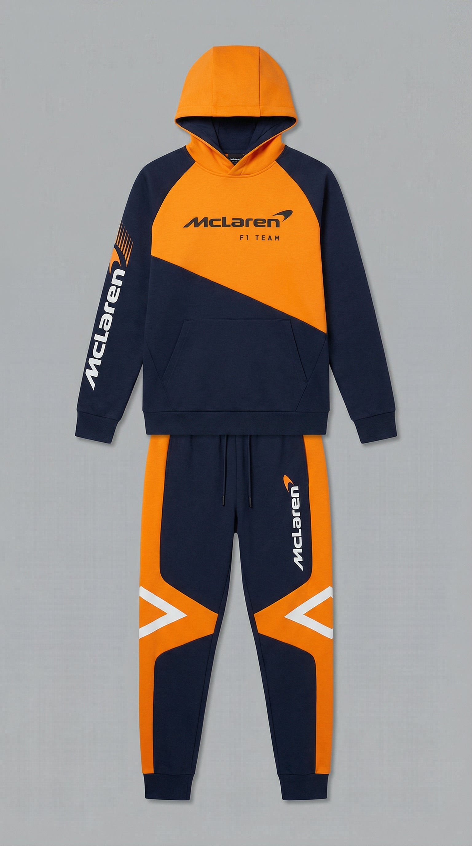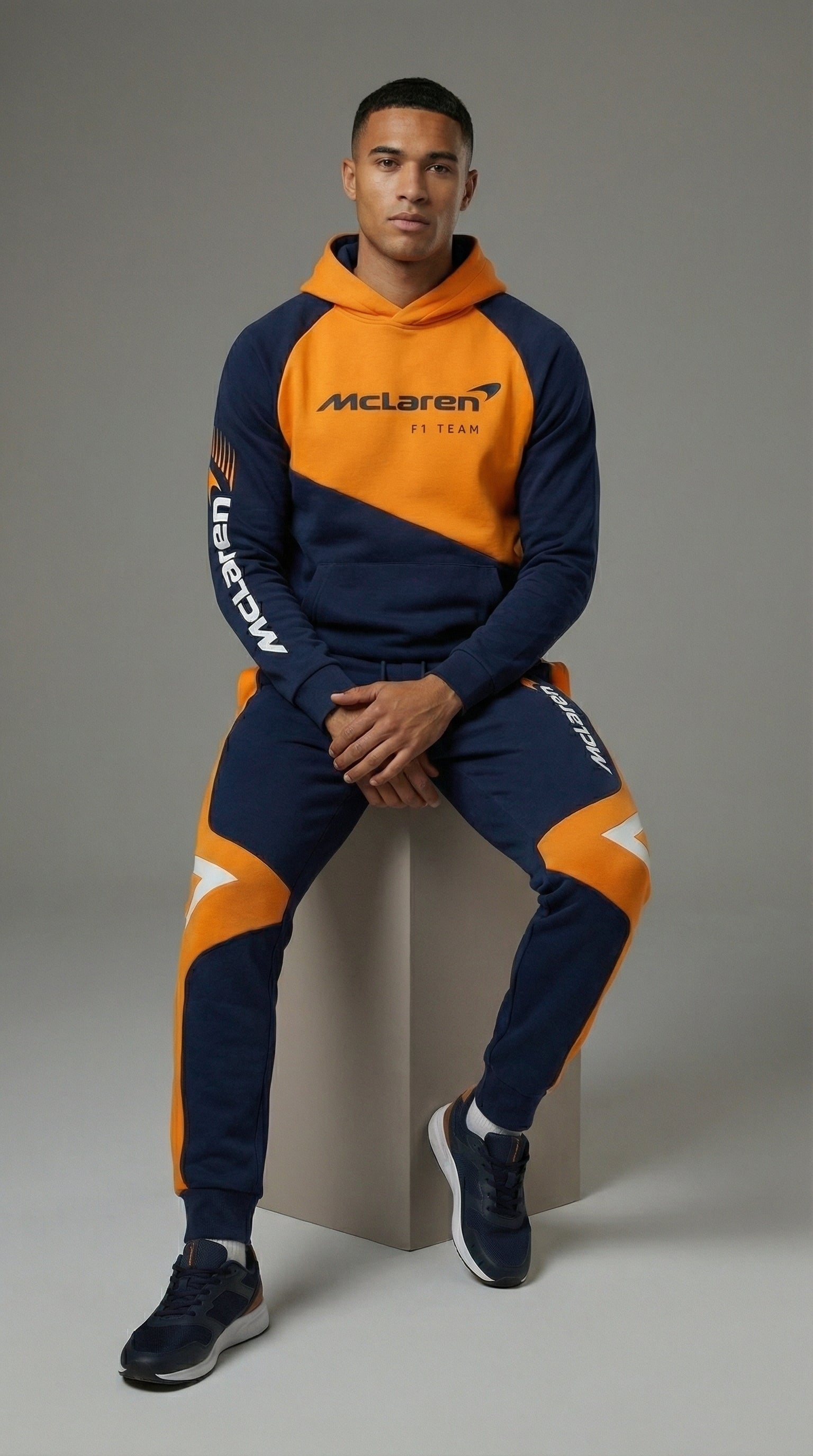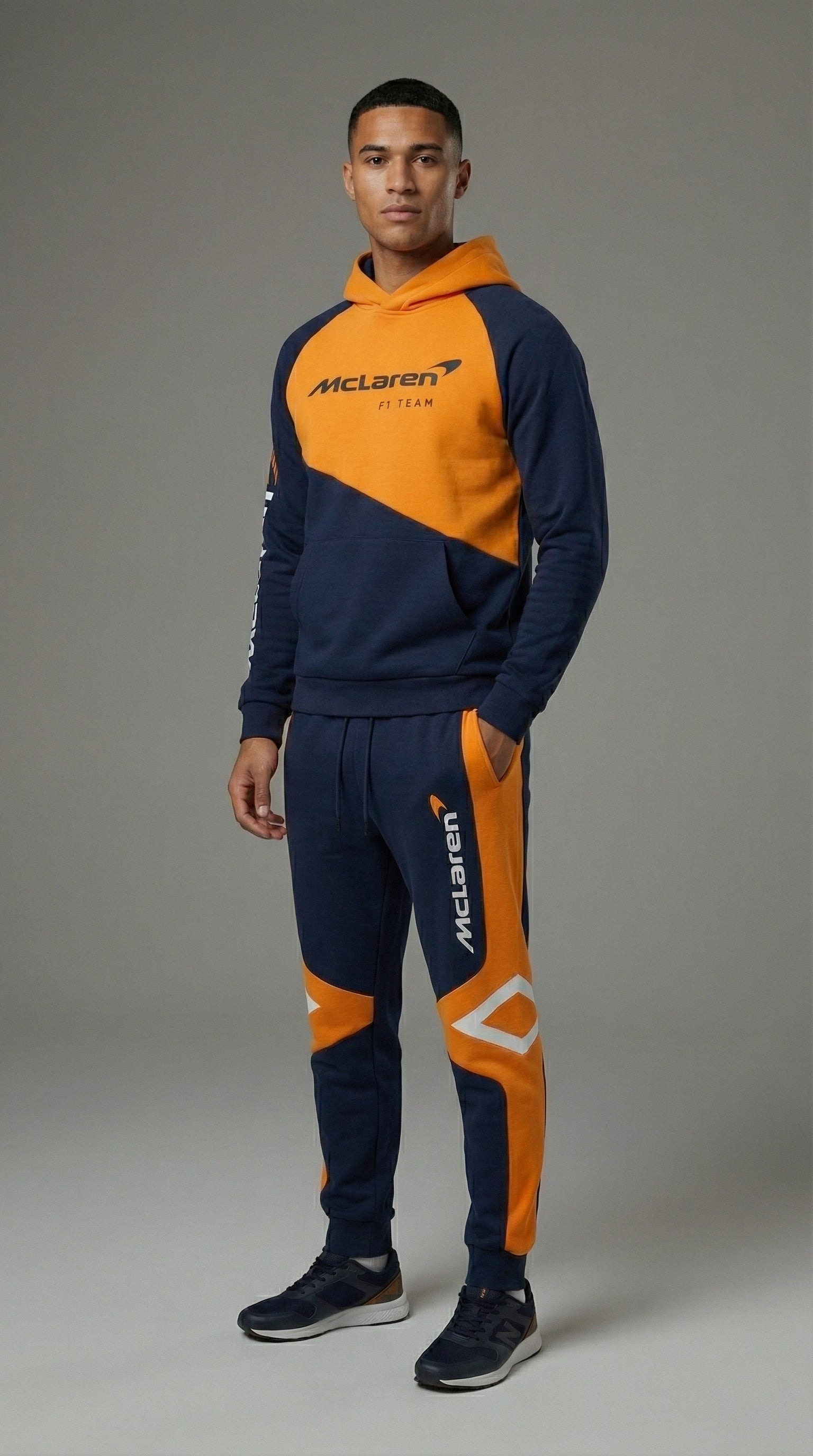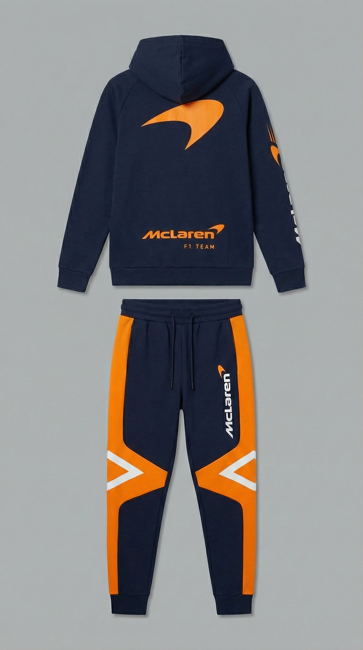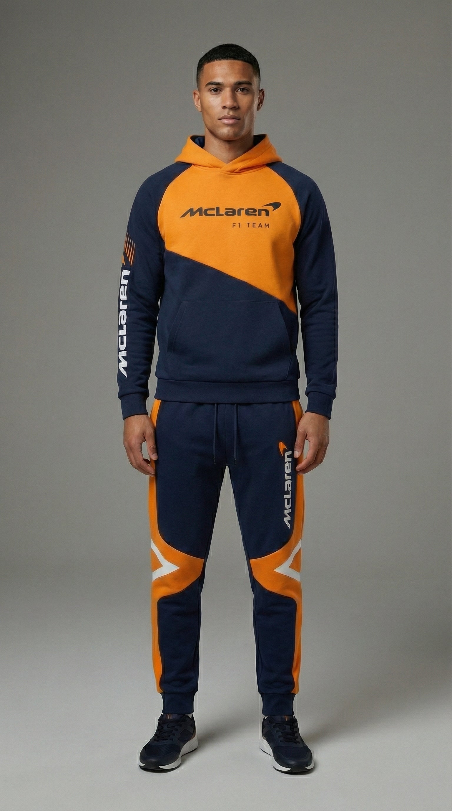 Featuring iconic McLaren-inspired detailing on the chest and leg, this streetwear tracksuit represents a legacy built on speed and innovation. The bold racing identity instantly communicates passion for motorsport culture, allowing you to wear your enthusiasm with confidence and pride.