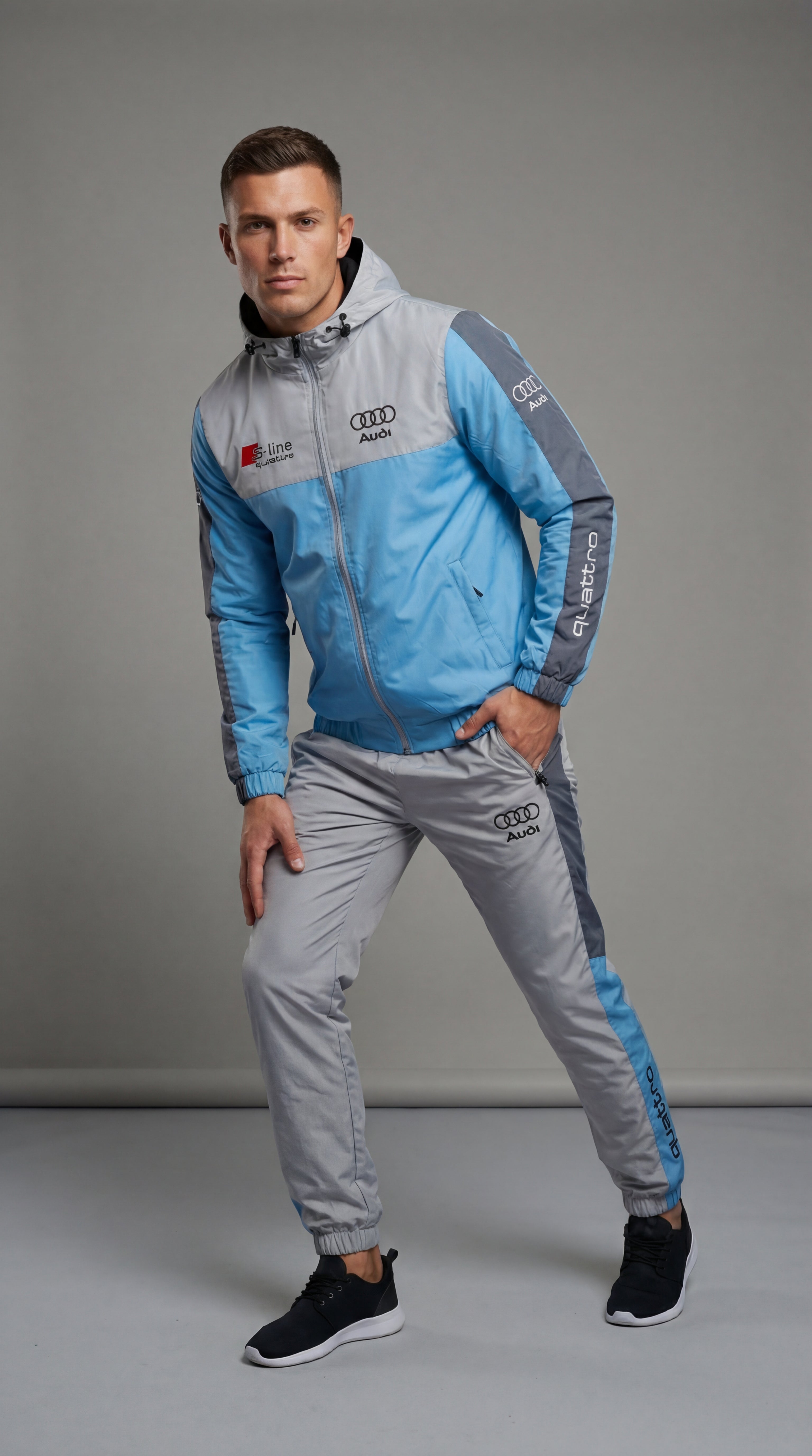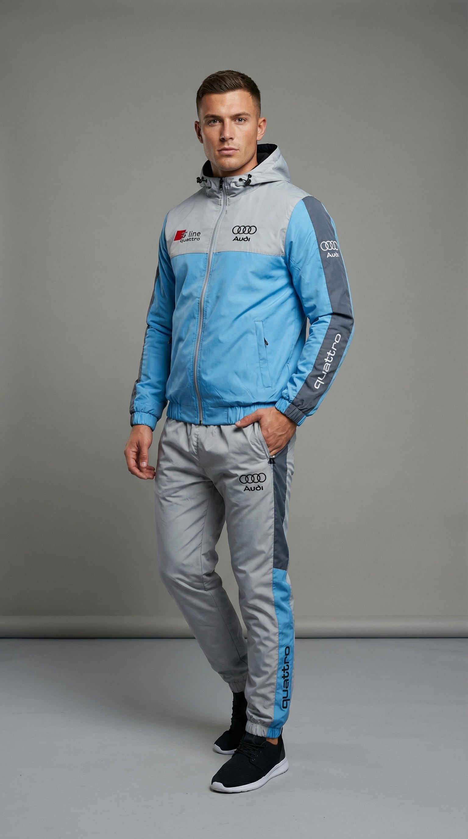 Rev up your wardrobe and embrace the thrill of the open road with our exclusive Audi Driver Apparel Tracksuit. This isn’t just outerwear; it’s a statement, a celebration of the driving spirit tailored specifically for Audi enthusiasts. Crafted with the modern Audi driver in mind, this tracksuit seamlessly blends comfort, style, and functionality, ensuring you stand out both on and off the road.