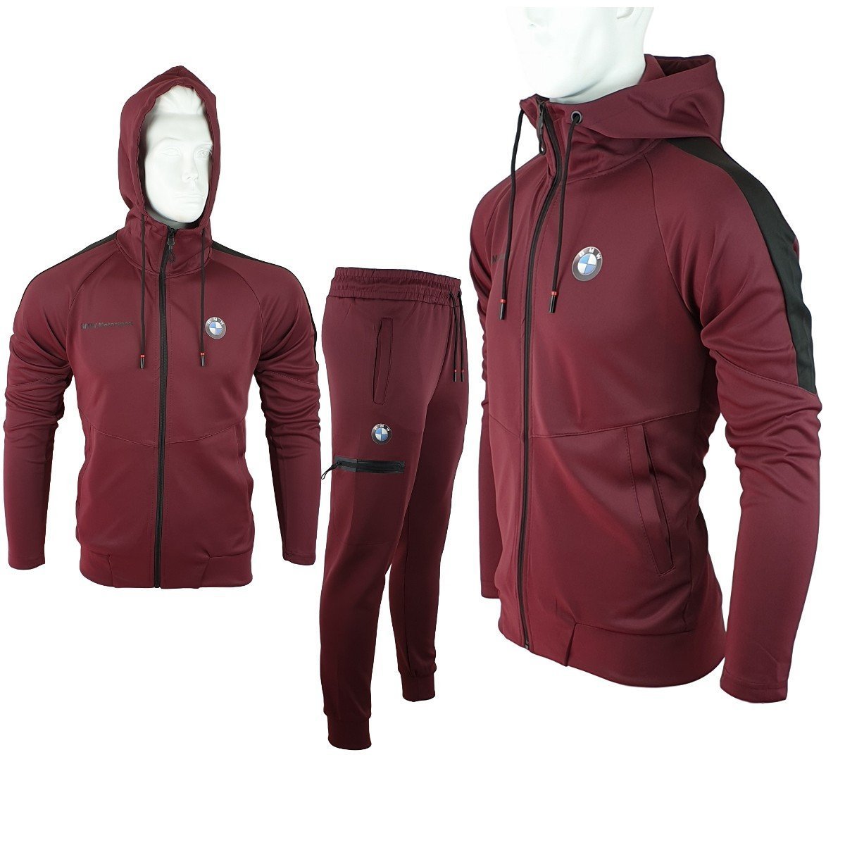 MEN TRACKSUIT TRAINING BORDEAUX BANDES BLACK MOTORSPORT BMW
